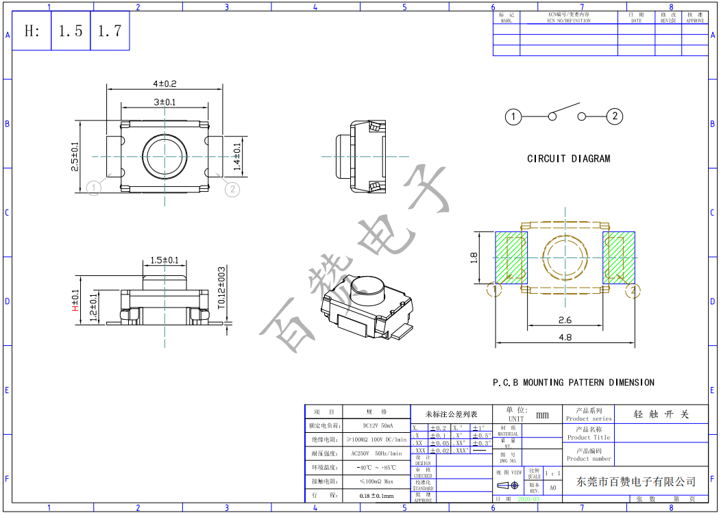 3X2.7圓鈕無柱長直腳兩腳小龜